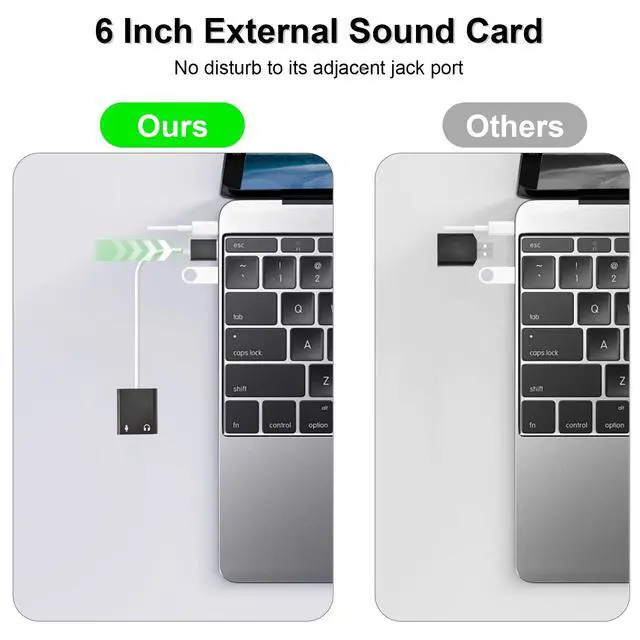 The usb sound card uses high quality metal conductors to transmit,And the card can be connected to both audio and microphone at the same time.No lag, good sound quality