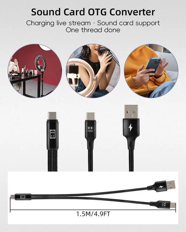 This USB C sound card cable can charge the device and transmit signals; This is very convenient and there is no need to buy or carry other conversion cables. < br > The maximum output power is 10W, please use at rated voltage. < br > The sound card cable length of this usb c sound card cable is 1.5M, which is a very ideal length for use in bedrooms, offices, outdoor and other places.