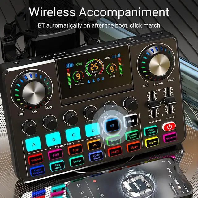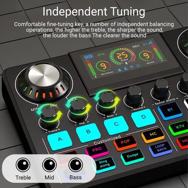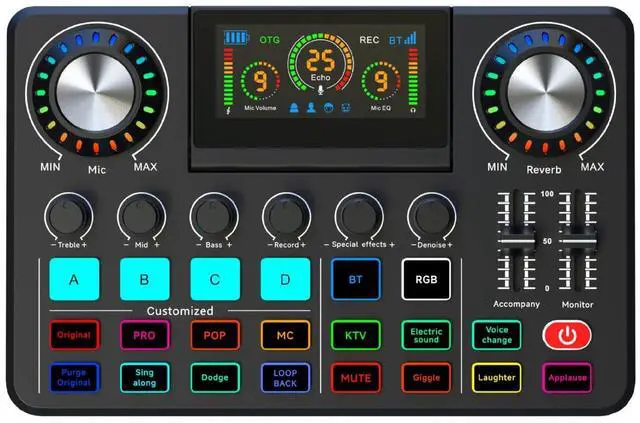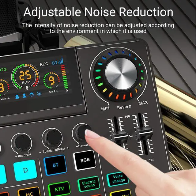 Sound Adjustment: High/medium/low frequency adjustment; Accompaniment, reverb, monitoring, special effects, recording adjustment; Microphone volume adjustment; Noise reduction gear adjustment;
