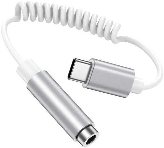 1 Pack 45CM Short Coiled USB C to 3.5mm iPhone 16e Earphones Jack Adapter Cord