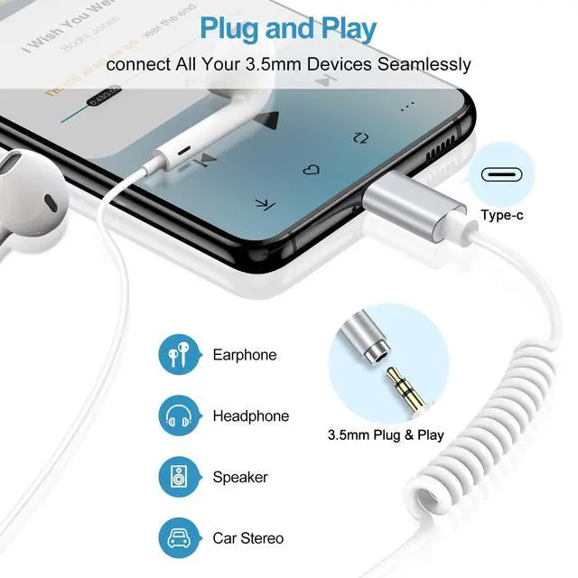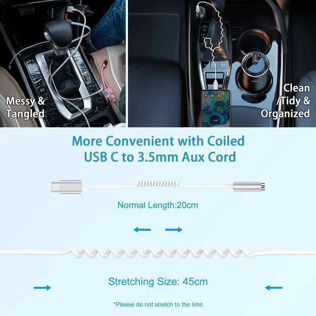 2. The coiled iphone 16e aux audio cable is the max stretch length is about 1.4 Feet. The comfortable length of use is 0.3FT-1.2FT and bounces back to normal length well.