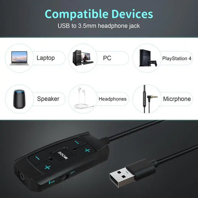 Plug and play, no driver needed, easy to use. Suitable for 3.5mm headphones, speakers, microphone, PS4.