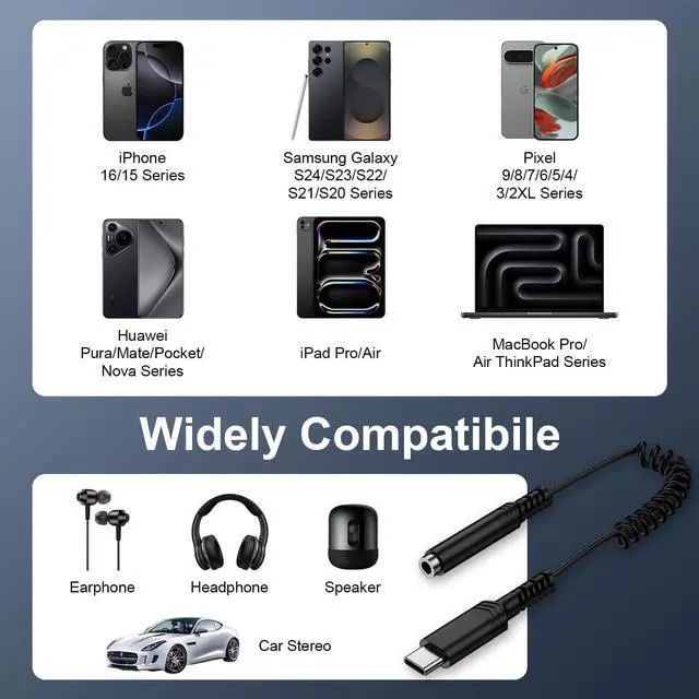 type usb c to 3.5mm Headphone Adapter for Android Compatible for: