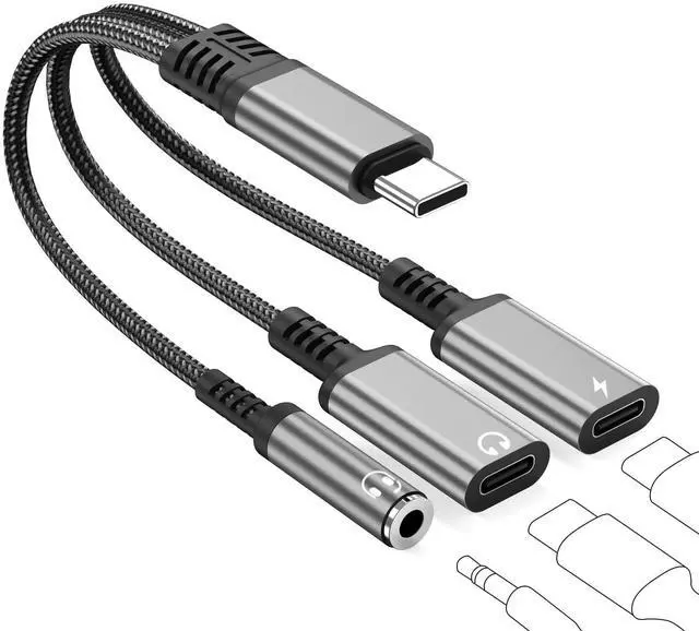 ?USB C Splitter 1 in 3 Headphone and Charger