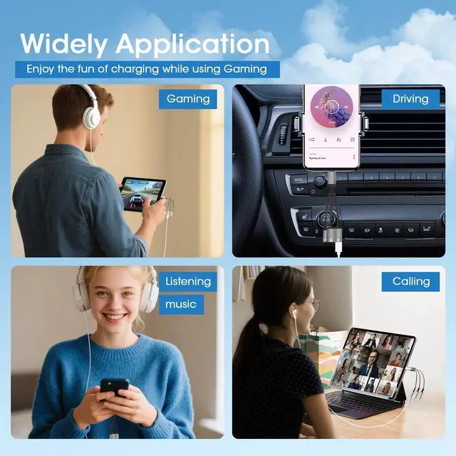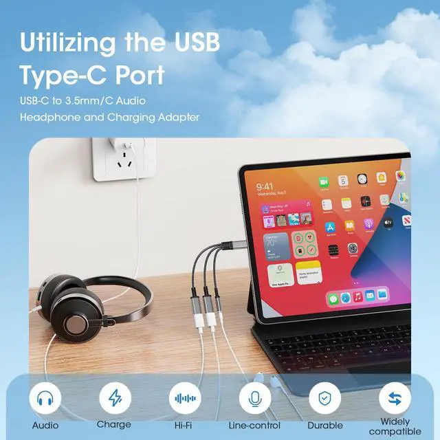 33-in-1 USB-C to 3.5mm Audio AdapterThe USB-C audio adapter splits the USB-C port into a USB-C port supporting PD fast charging, a USB-C headphone jack, and a 3.5mm audio jack, allowing you to charge quickly while listening to music, playing games, making calls, driving, or watching videos. It also supports volume adjustment during charging