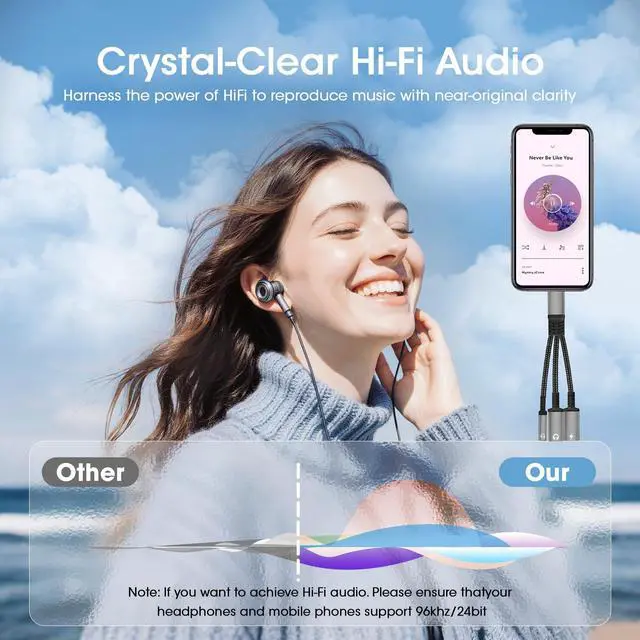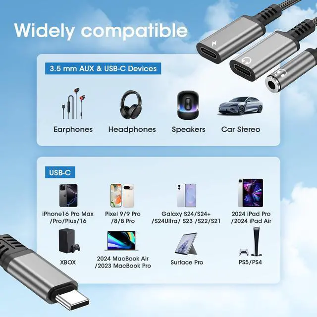 Premium Studio Sound This USB-C to 3.5mm adapter features an advanced DAC chip for immersive, high-fidelity audio. Experience studio-grade sound with 24bit/48kHz resolution and active noise cancellationenhancing your music, movies, and calls with crystal-clear detail and zero distortion