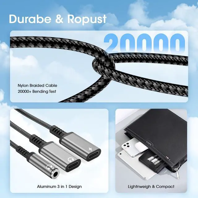 Stable Signal & Durable MaterialWith the relief strain design, this type c to aux adapter can stand 20000+ bending tests, which makes this adapter much more durable. Metal-coated connectors for better contact ensure stable and lossless audio signal transmission