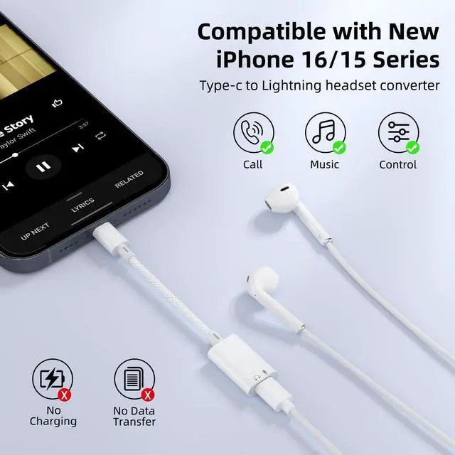 Lightning Earphone Adapter: Vcddom USB-C to Lightning Audio Adapter allow you using your lightning earphone connect to your USB-C devices such as iPad Pro, MacBook, iPhone 16. No need to prepare another USB C earphone in result of wasting. In addition, this audio adapter also supports wire control function such as volume up/down, playback and pause. Please Note: Only for Audio, Not for Charging and Data