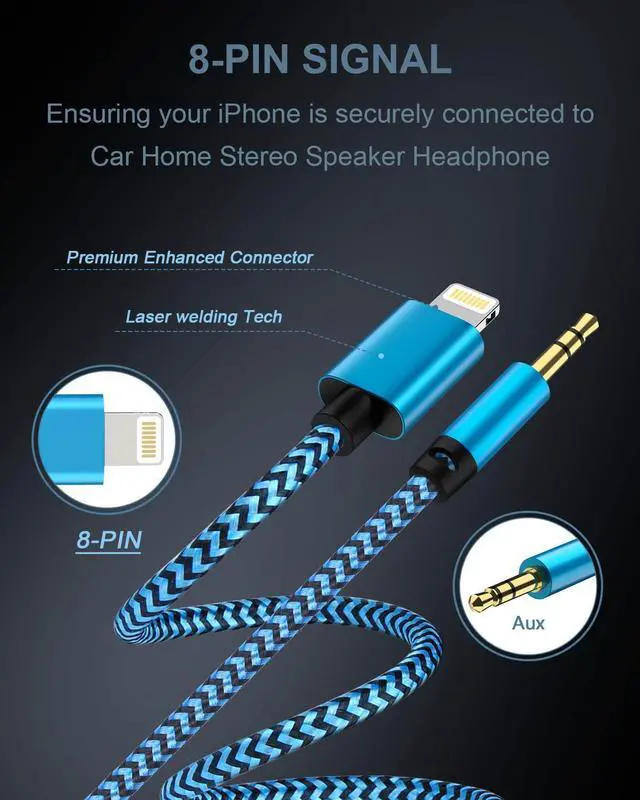 ![Main image of [2Pack/3.3ft] Lightning to 3.5mm iPhone Aux Cord, [Apple Mfi Certified] iPhone Aux Audio Cable for Car Home Stereo Speaker Headphone Compatible with iPhone 14 13 12 11 Pro Max Mini XR XS 8 iPad iPod](https://c1.neweggimages.com/productimage/nb640/C6EHD2604230B74Z803.jpg)