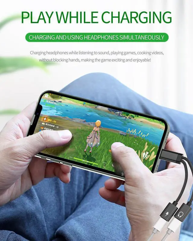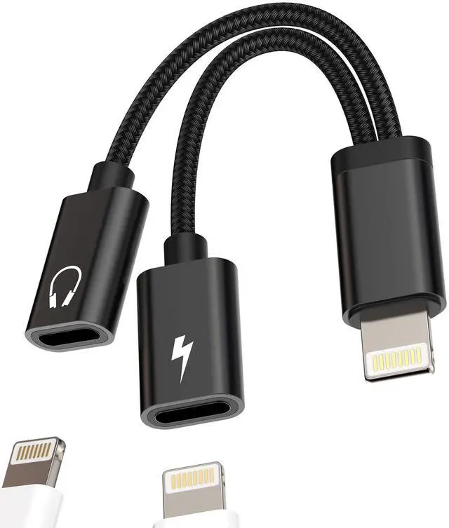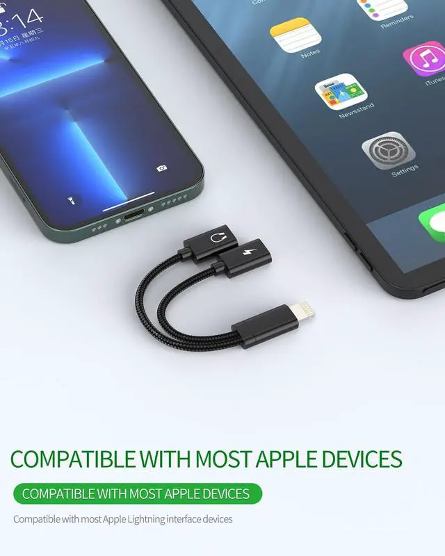 Iphone Headphone Adapter(2 in 1)Dual Lightning Jack Adaptador Audio Charger Connector MFI Certified Music Charging Converter AUX Dongle Splitter for 14 13 12 11 Pro Max X Xr Xs Se 7 8 Plus Ipad