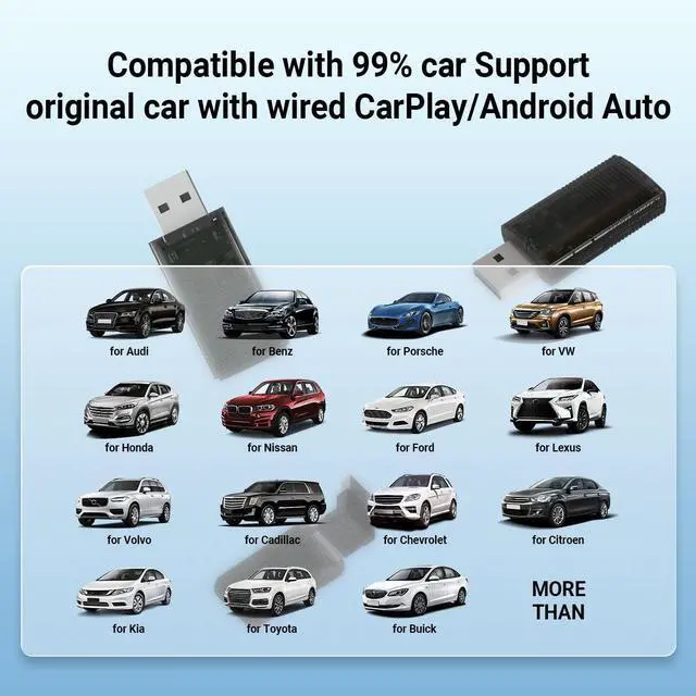 Plug-and-Play Universal Compatibility: Designed to work with a wide range of vehicles. Just plug it into your car's original USB data port (the one used for CarPlay). No complex installation or modifications required.