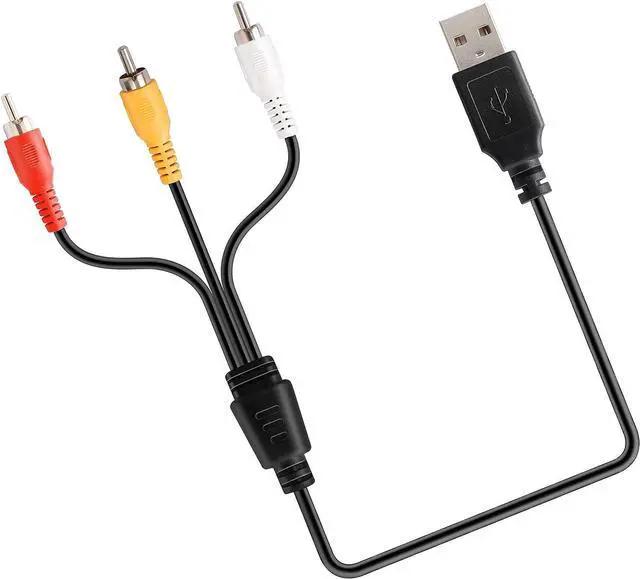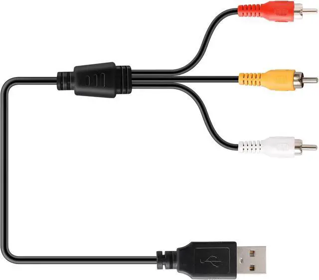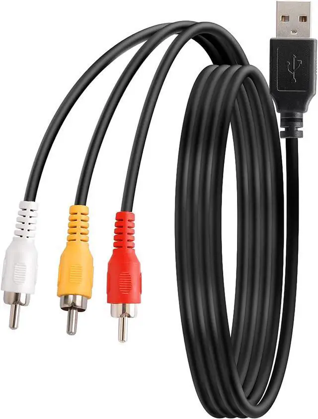 Connectors: USB male on one end - three colors [white/red/yellow] coded male RCA jacks on other end. AV composite cable USB to 3 RCA male adapter cable allows you to view pictures and videos from camcorders on your USB-enabled television or on your PC.