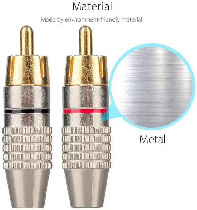 Solderless RCA Plug Design: These solderless RCA plugs require no soldering making speaker wire installation quick and hassle-free. Perfect for connecting RCA male connectors to A/V receivers DVD players TVs amplifiers and mixersDurable and