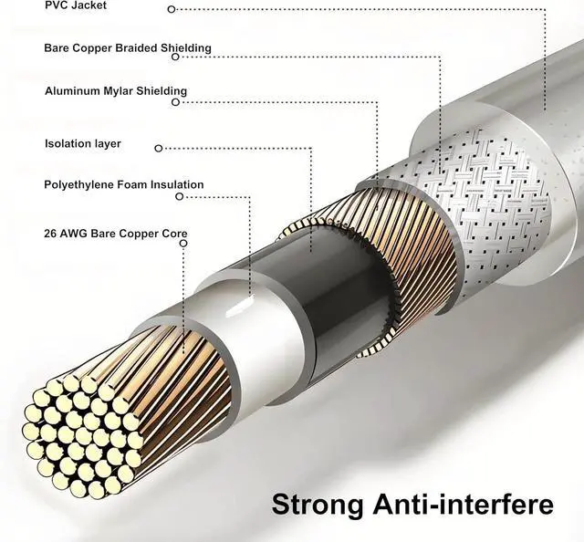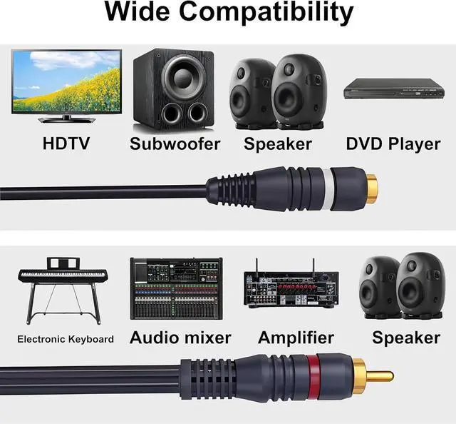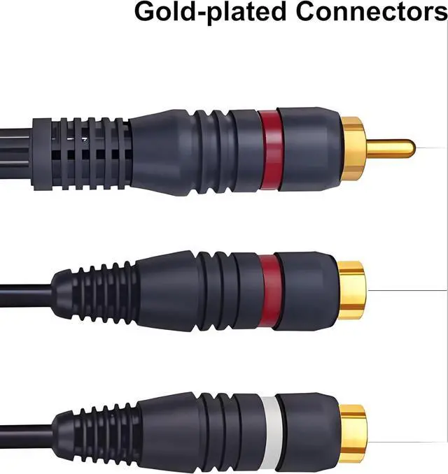 Premium Gold-Plated Connectors? The RCA splitter Gold-plated RCA jacks resist corrosion & ensure crisp audio/video transmission with minimal signal loss. Dual-Layer EMI Shielding? for the RCA Y Splitter Braided copper + aluminum Mylar shielding blocks 98% interference for pure stereo sound (tested in 30+ dB environments). Hi-Fi Grade Audio Fidelity? - RCA splitter 1 Male to 2 Female Oxygen-free copper cores deliver studio-level sound clarityperfect for subwoofers home theaters & gaming setups. Universal RCA Compatibility? Works with RCA cable TVs amplifiers car stereos