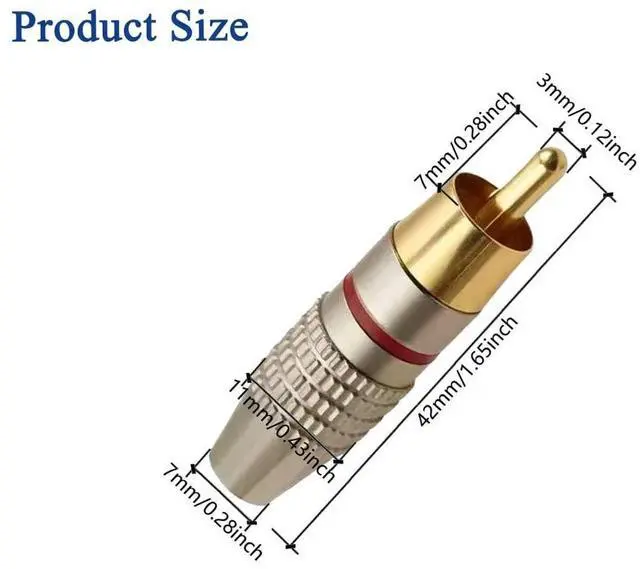 DVD players and moreHigh-fidelity transmission: Voluty Tek audio male plug to 3.5 mm adapter is made with metel connector body ensuring stable signal transmission reducing signal loss and delivering clear audio and video qualityDurable construction: Metel connectors resist oxidation extending the product's lifespan and ensuring long-term reliable performancePackage content: 10pcs of video adapter suitable for RCA coax adapter. Please let us know if there is any quality problem we will try our best effort to satisfied youEasy to use: Voluty Tek video adapter suitable for RCA plug connectors no need additional setup required simply connect your devices for instant use. Easy and convenient operation making it user-friendly even for beginners