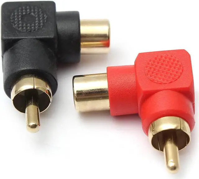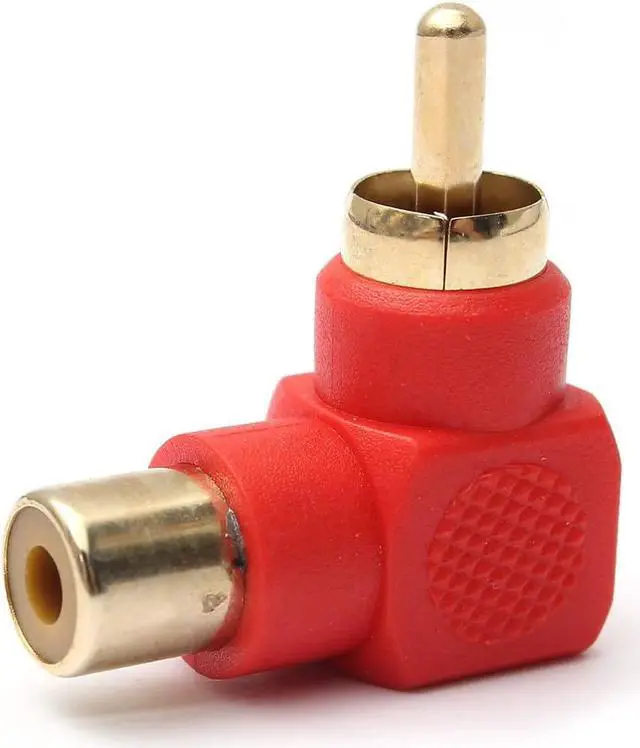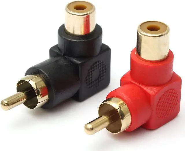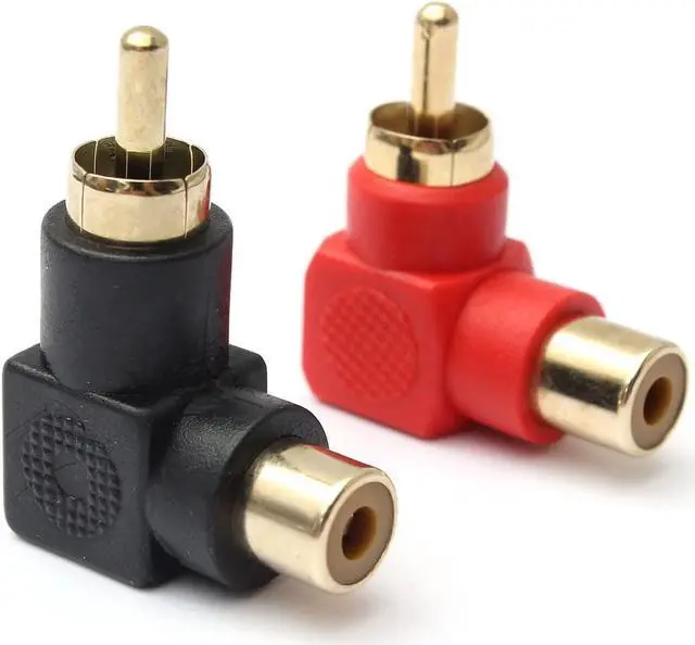RCA Male to RCA Female Adapter Strictly made with seriously selected materials gold plated connectors to ensure minimal signal loss and durable using experience! Right Angle 90 Degree Elbow; Right angle RCA adapter is perfect for use in tight spaces90 degree RCA adapter is suitable for Coaxial Networks Used in Video/Audio ApplicationsIdeal for positioning RCA cables flush against an HDTV Blu-Ray/DVD player game console DVR cable/satellite box subwoofer receiver or other RCA-enabled device. Each adapter comes individually packaged to guard from scratches. Angled RCA elbow Full Molded Plastic Construction; Gold-Plated Contacts. Provides right angle RCA adapters for the left and right audio channels; Plug in an RCA angle adapter to a subwoofer placed next to a wallPackage include: 10PCS RCA Right Angle Adapter (5 BLACK+5 RED)