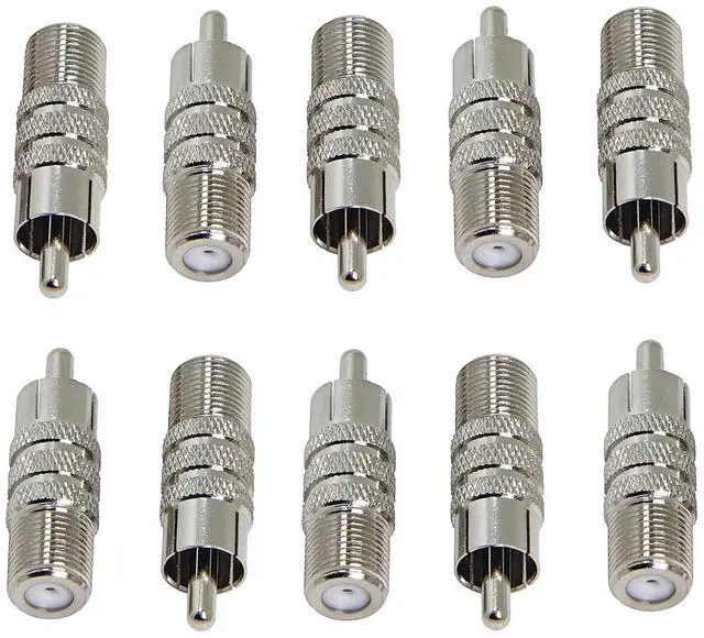 PACKAGE CONTENT: Cost-effective 10 x F type female jack to RCA male connector sufficient for using and replacement.