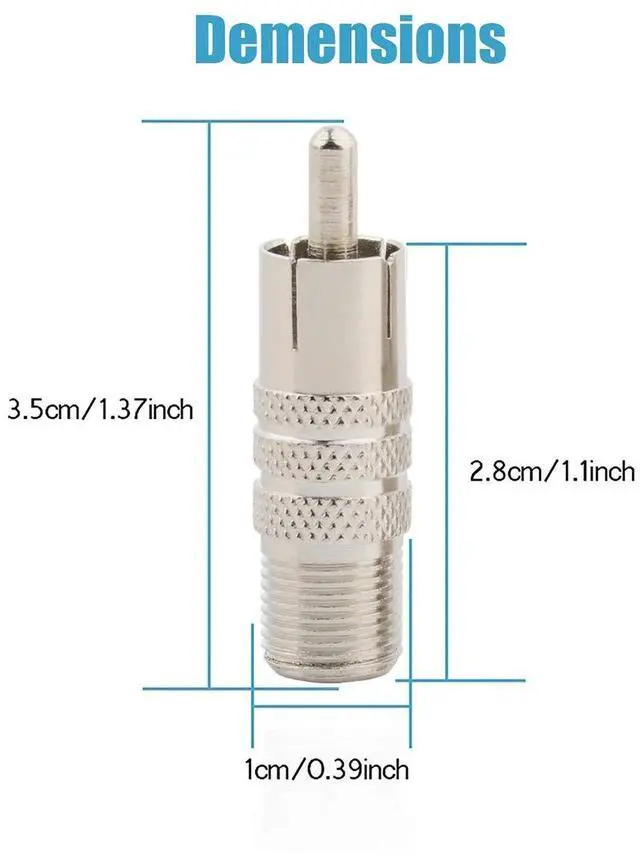 APPLICATIONS: F type female to RCA male adapter converts coaxial cable to male RCA plug converts any RCA/Phono socket to a standard F socket or an F plug to a RCA /Phono plug connector used on both different video and audio system like subwoofer video game consoles TV sub etc.?