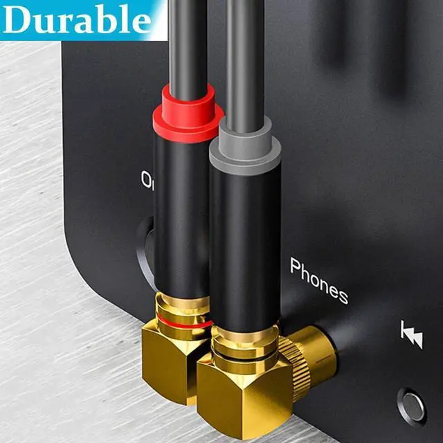 HANDY CONNECTOR: 90 degree RCA adapter connects a subwoofer cable RCA audio cable or RCA component video cable to an A/V receiver subwoofer DVD player soundbar car stereo desktop computer or TV. Right Angle RCA Adapter connects to the RCA white and red channel ports found on video and audio electronic equipment; Adjustable RCA phono cable connector can be rotated to route the cable at the best possible angle from your AV receiver.?
