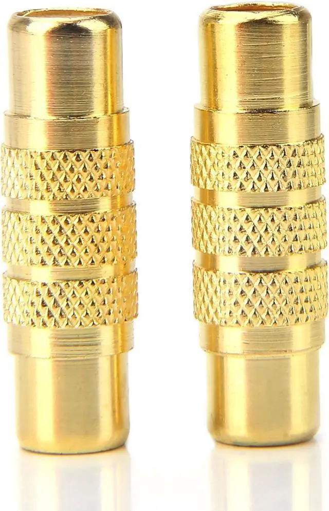 RCA Female to Female Coupler Jack Adapter Convenient and cost-effective 2-pack360 Degree grip treads help plug and unplug easily; Portable and easy to handleGold Plated Copper Construction with a much longer service life compared with those plastic connectors with metal paintingGreat for home entertainment and video game useClean up your wiring cables. Prevent from entanglement