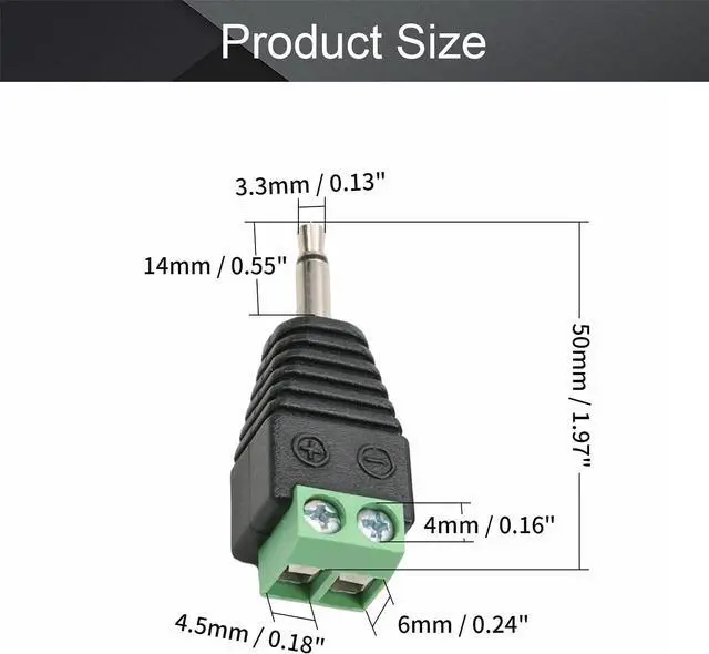 Connector Type: 3.5 mm 2 Pole Male Connector;