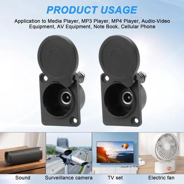 Easy to install just drill out a hole of the base panel and then use two screws to fix the 5521 DC female head socket base on the panel then plug and playWidely used: the DC power socket is widely used in car audio video communication tape recorder audio machine learning notebook computers household appliances etc.