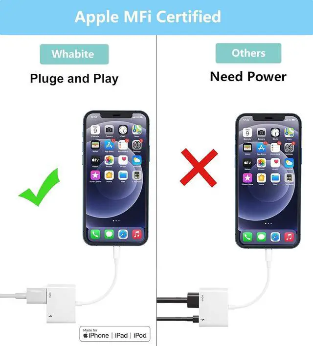 Wahbite Lightning to HDMI Digital AV Adapter 1080P Video AV Audio Converter Cable HDMI Sync Screen Connector Compatible with iPhone 13 12 11 XR XS Max X 8 7 6 Plus to HD TV Projector Monitor