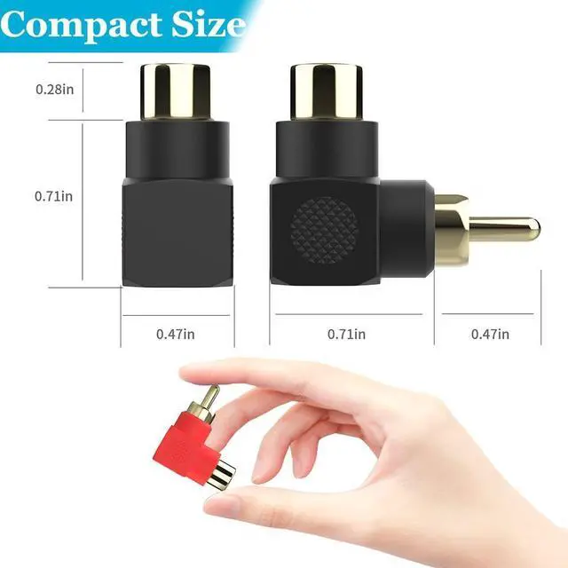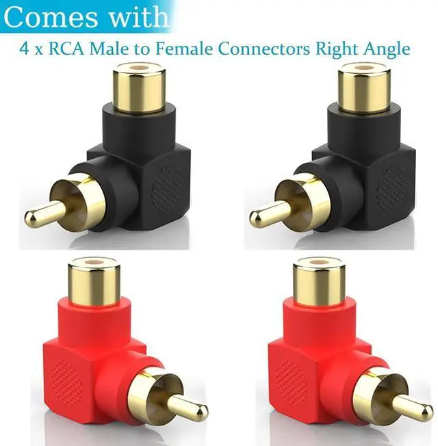 PACKAGE CONTENT: Cost-effective 4-Pack RCA Male to RCA Female Adapters 90 Degree Connectors.