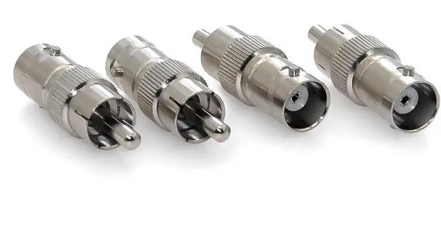 Connector: The BNC to RCA Connector is made of pure brass Made of premium material for higher signal transmission and low signal loss every timeApplication: compatible with CCTV Security Camera / Surveillance Systems DVRs Cameras Switchers Home Theater TV and satellite receivers RG59 RG58 RG11 RG6 RF Coax Cable and video devices using RCA to