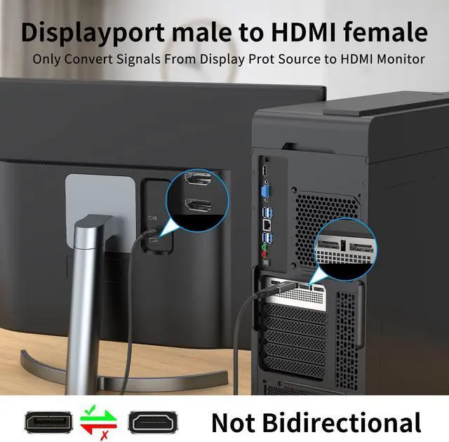 Compatible Windows Mac OS X PC Loptop with USB-C port that must support DisplayPort Alternate ModeBuilt-in advanced conversion chip converts DisplayPort signal to HDMI signal; It is NOT a bi-directional converter and cannot transmit signals from HDMI to DisplayPort.