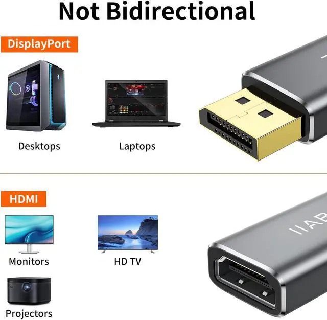 DesignThe adapter simply space gray piece of machined aluminum is well proportioned and compact; Without an annoying cable alongside it is convenient to use and always stick to the hdmi cable or the computer; With the super slim design it does not block any other port of your computer and can be easily used side by side for multiple display setup. 4K UHD ResolutionThe IIABC DP-HDMI adapter offers 4K resolutions up to 3840x2160 at 30Hz Unlike other DP to HDMI adapter that only support a 1080P refresh rate this 4K Display Port to HDMI Converter is ideal to get the most out of your new 4K TV.
