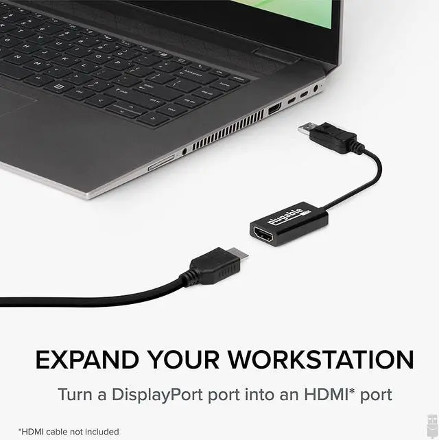 HDMI Adapter: Converts a laptop or desktop DisplayPort output to HDMI for easy connection to an HDMI capable display monitor or