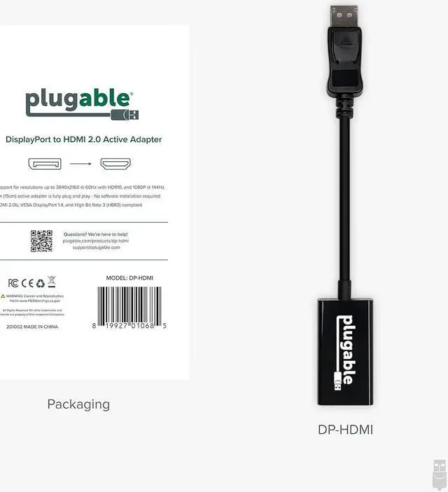 HDTVSupported Resolutions: Supports HDMI displays up to 3840x2160 @ 60Hz (4K) resolutionStandards: VESA (DisplayPort) certified; compliant with VESA Dual-Mode DisplayPort 1.2 High Bit Rate 2 (HBR2) and HDMI 2.0 standards;