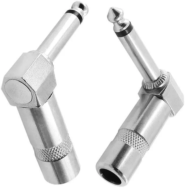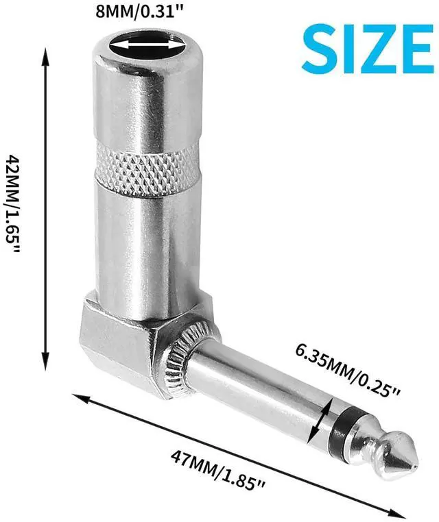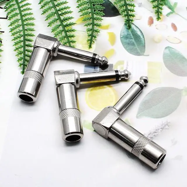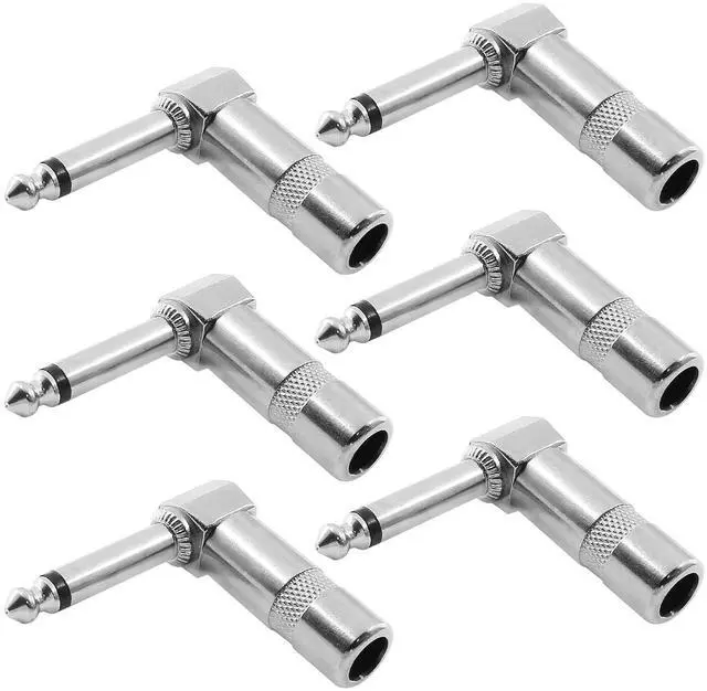 Made of zinc alloy material it has excellent signal transmission ability. The surface is nickel plated which has strong corrosion resistance and better service life. Compatible with all stereo audio equipment with 6.35 mm plug such as guitar amps mp amps. The connector is a 6.35 mm mono right angle plug. Package contains 6 items. All metal construction needs to be welded before using plug and wire.