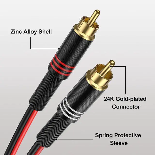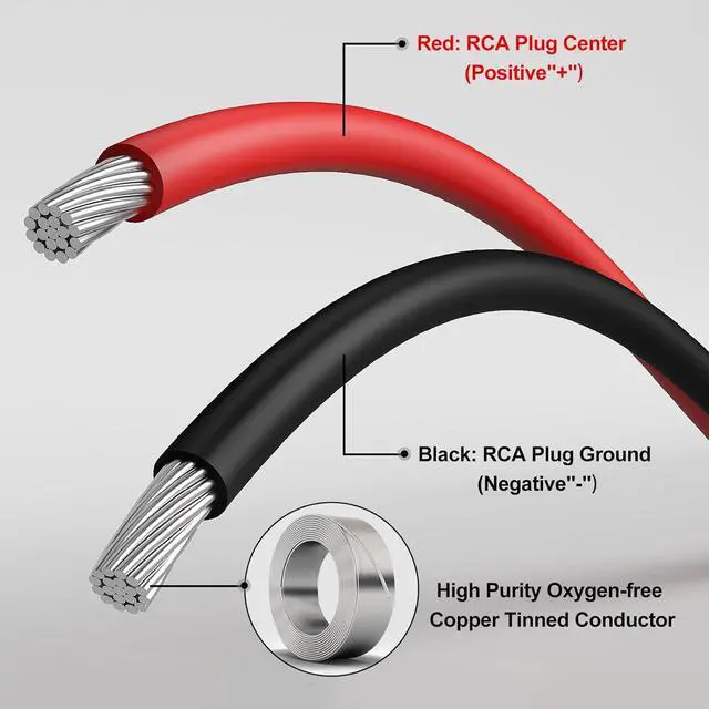 Speaker Wire: RCA cable is used to connect bare wire-end speakers replace and repair wiring cables; the RCA adapter with a spring tail protects the cable from wear and tear making it more durable20AWG wire gauge: premium 20AWG wire gauge 24K Gold-plated RCA plug 20awg high purity oxygen-free copper conductor make the audio signal transmission less loss achieve premium sound qualityPlug and