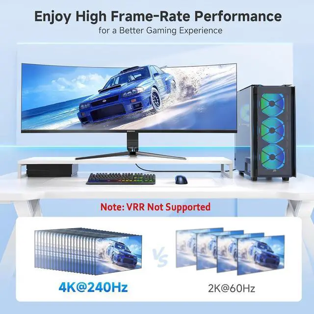 Audio Experience: Hear every detail with surround sound support and enjoy vibrant visuals with HDR using this HDMI to DisplayPort adapter. This HDMI 2.1 to DisplayPort 1.4 adapter cable supports ultra-high 4K resolution at 240Hz for a superior viewing experience.
