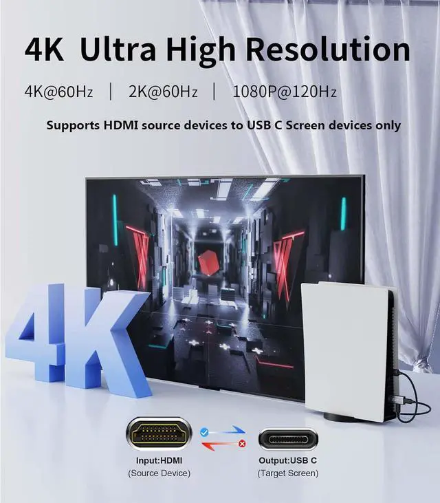 Note: External USB power is required for optimal performance but it only powers the adapter and does not charge connected devices. Stunning 4K ClarityExperience lifelike visuals with 4K@60Hz UHD resolution delivering crystal-clear images and smooth motion. The adapter is backward compatible with 4K@30Hz 1440p@60Hz and 1080p@120Hz ensuring compatibility with a wide range of devices. Perfect for gaming streaming or immersive AR/VR experiences it brings every detail to life. Plug-and-PlayNo drivers or software are neededsimply connect and enjoy.