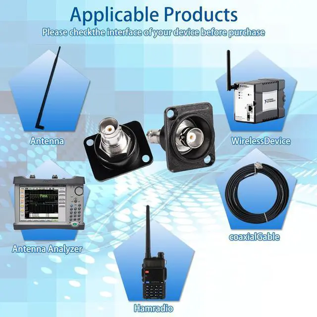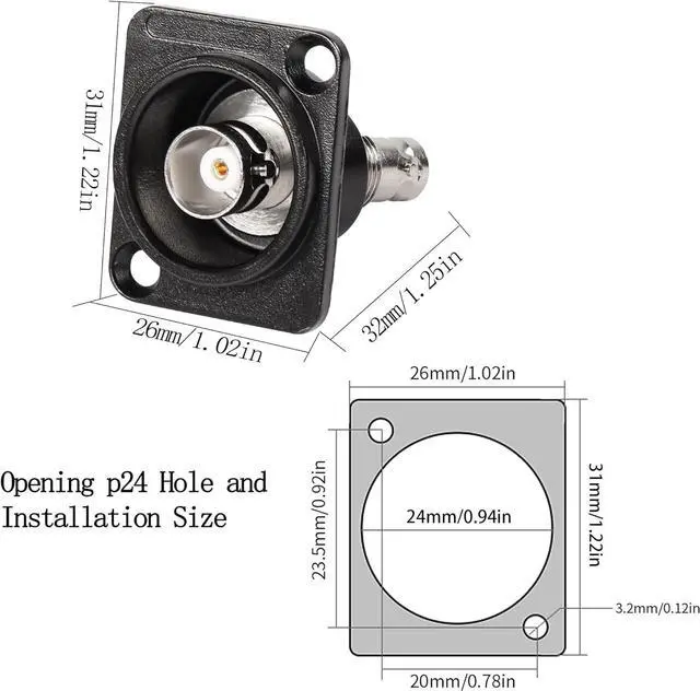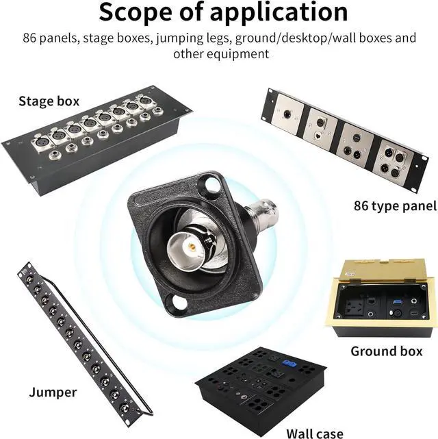 BNC panel mount receptacle suitable for developing custom communication system RF electronic system input/output configuration connecting BNC coaxial cable for safe and stable signal transmission. BNC socket to socket adapter Applications in surveillance engineering audio-visual imaging and laboratories connecting wireless communication systems TV test equipment LMR wireless LAN other RF electronic devices. BNC female to female panel mount adapter built based on the industrial standard XLR panel / D-type panel aperture. Suitable for fixing on walls desktops equipment panels racks etc. BNC jack to jack board connector impedance: 75. BNC Female Pass-Through Coupler Zinc alloy die-cast housing that provides rugged chassis protection to ensure durability and meet the special needs of certain harsh conditions.