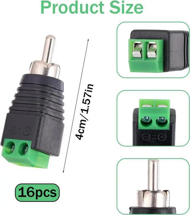 Comprehensive Package: The package includes 16 pieces of male RCA plugs designed for speaker wires. These solderless plugs require no electrical tap no splicing no crimping and can be easily installed using just a small screwdriver providing a hassle-free and secure connection for your audio and video installations.