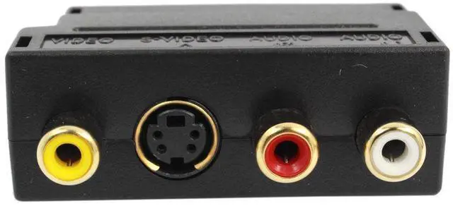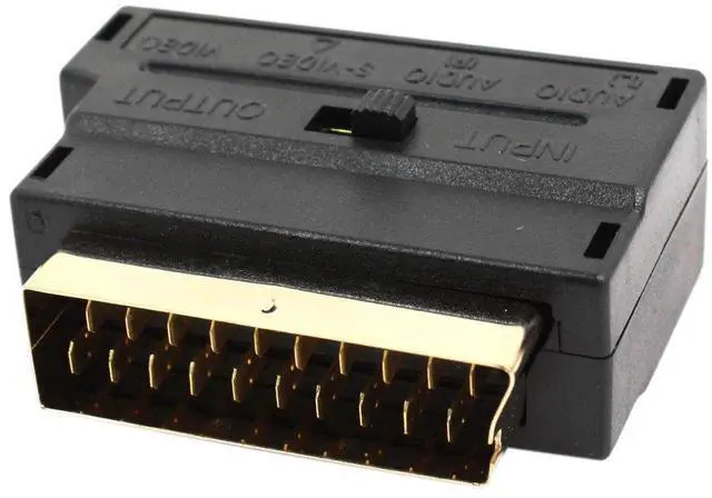 Product Name: RGB Scart to 3RCA S-VHS Adapter; Type: 20-Pin RGB Scart Male to 3RCA S-VHS FemaleSize: 5.8 x 5.1 x 2cm / 2.3 x 2x 0.8 (L*W*T) )Weight: 35gColor: BlackPackage: 1 x RGB Scart to 3RCA S-VHS Adapter