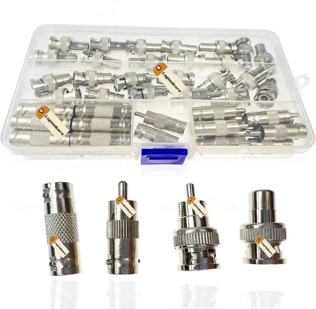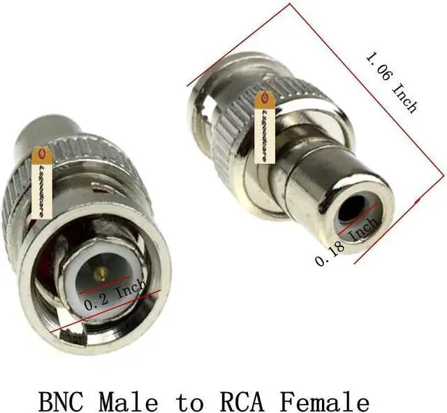 Use: Simply & Professional appearance for connectionbnc male to rca av female adapter: It provide proper RF and digital interface for use on commercial grade video equipment. Multifunction bnc female to female connector: Widely used to conversion and connection of connectors among videos from CCTV Camera and DVR surveillance. BNC Male Jack to RCA Female Adapter + BNC Female to RCA Male Connector + BNC Female Coaxial Connector + BNC Male to RCA Male Splitter Plug