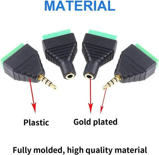 Material: They are made of high quality copper and plastic with gold plated for maximum signal transfer & durability. It has four total conductors - three signal and a ground as opposed to a more common stereo jack's two.
