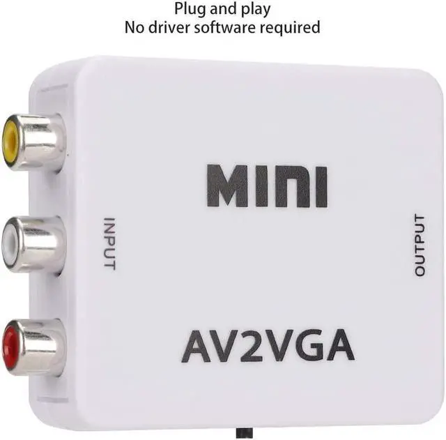 VGA ConverterConnect the converter to a display device with VGA interface for monitoring the old AV red yellow and white interface of set-top box DVD recorder and convert AV video signal to VGA. Good CompatibilityIdentify the resolution automatically (640 * 480/800 9600 * 1024 * 768 * 1280 * 1024 * 1440 * 900 * 1680 * 1050) it has good compatibility with monitors. Easy SwitchingWith advanced scanning frequency the refresh rate can be easily switched between 60Hz and 75Hz while keeping the image stable and not be out of shape. Free DisplayConnecting VCD/DVD/web cam/set-top box etc.