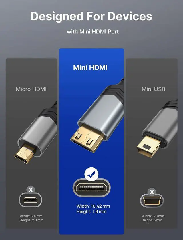 HDMI portWidely Compatible: Compatible with DSLR Camera/Camcorder/Graphics Video Card/Raspberry Pi Zero/Pi Zero W/Laptop/Tablet/HDTV/Pico Projector/NUC barebones desktop/Sony HDR-XR500/Nikon D3200/Nikon D810 and more devices with mini