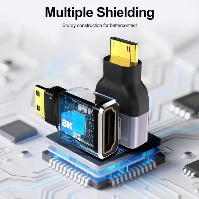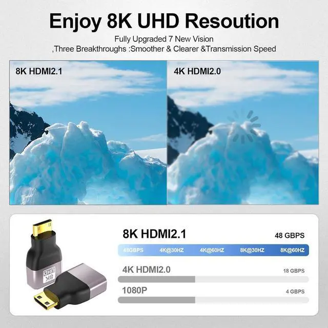 8K Ultra HD & High-Speed Performance This 8K 2.1 Mini HDMI to HDMI Adapter supports 8K@60Hz 4K@144Hz and 2K@240Hz resolutions delivering lag-free theater-quality visuals for gaming streaming. Plug & Play No Drivers Needed Compact lightweight and travel-ready.