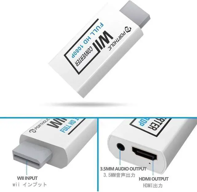 Small in Size: PORTHOLIC Wii to HDMI Adapter with size of 6 x 3 x 1.9 cm is smaller than a Zippo. Small but powerful. It does not occupy any space on your table by hooking up the back of Wii. No more tangling cords just one cable.