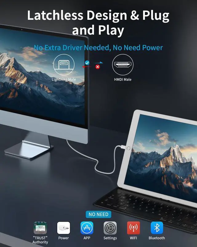 HDMI: Our lightning to HDMI offers seamless connectivity with no additional software or app installation required no need Personal Hot spot or WIFI no need power supply. With our hdmi to lightning cable for iphone connect your iPhone to TV directly without needing an extra HDMI Cable. The HDMI to iphone adapter is the perfect solution for seamless connectivity between your iPhone and TV projector or monitor. This HDMI cable offers a hassle-free plug and play experienceUniversal