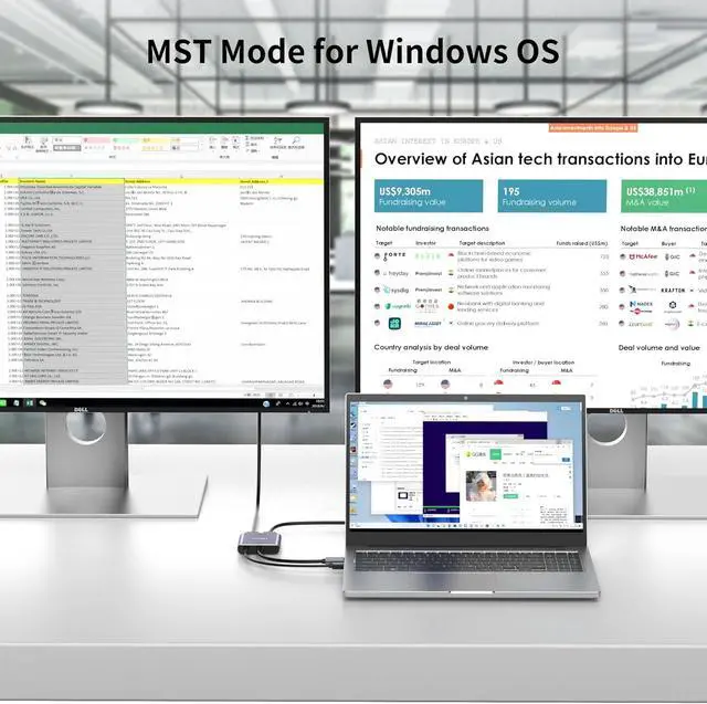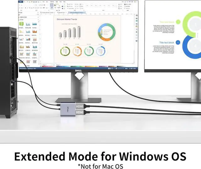 HDMI Splitter: fairikabe displayport to dual HDMI splitter acts as a DisplayPort splitter (not for mac) splitting the DisplayPort signal to two HDMI monitors which supports extended mode and duplicate mode for Windows enhance productivity at work or study. 1) The Micro USB cable must be connected before use otherwise it wont work. 2)Mac OS and integrated GPU only suppors SST/ duplicate mode (AAA/ABB) if your PC is mac os and integrated gpu we do not recommend buying; 3) Not work with any Dock/ Hub / KVM / adapters not work with Optiplex 790Extend Display (ABC Mode) for Windows OS and