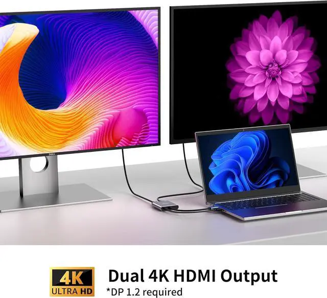 Discrete Graphics: The adapter only support extend display mode for windows OS. Not work for mac OS. On macOS and some PC with integrated graphic cards the additional 2 displays will only mirror the display. PLEASE CHOOSE EXTEND OR DUPLICATE MODE IN PCS DISPLAY SETTINGSImportant Tip: Must connect USB power cable to ensure the DisplayPort to dual HDMI adapter operating normally. The USB power cable was included in the package bag. You can connect it on laptop or PCs USB port or on chargerNot Work with