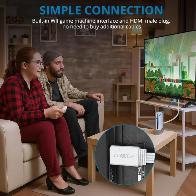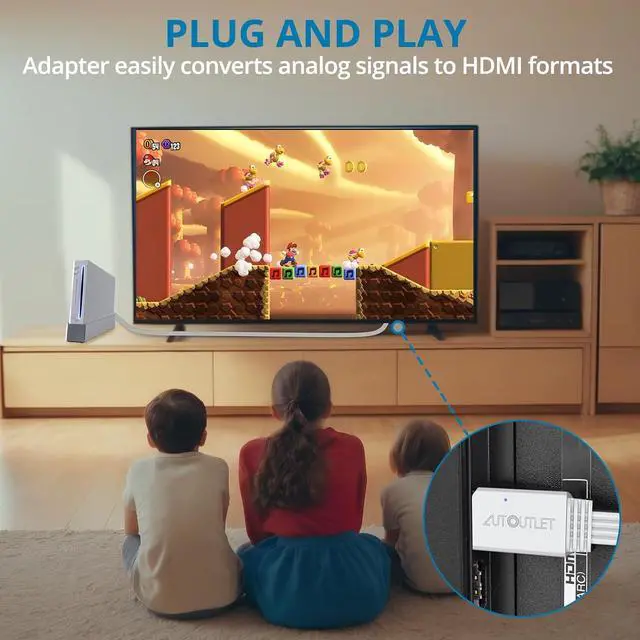 Whether you're playing in standard resolution or high definition it ensures the best gaming experiencePlug and PlayThe converter is designed for simplicity fully supporting plug-and-play functionality with no additional drivers or complex settings required. Simply connect your Wii console to your HDMI device and start gaming immediatelyFull Digital HDMI Video and Audio OutputThis converter transforms analog signals into full digital HDMI format ensuring no transmission loss for both video and audio signals providing you with clear and interference-free contentWide CompatibilityIn addition to supporting the Wii console this HDMI adapter is also compatible with Wii U HDTVs monitors and projectors making it a versatile solution for various home entertainment devices